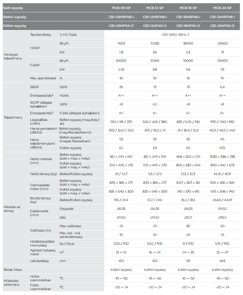 • Hűtő teljesítmény : 2,8 kW