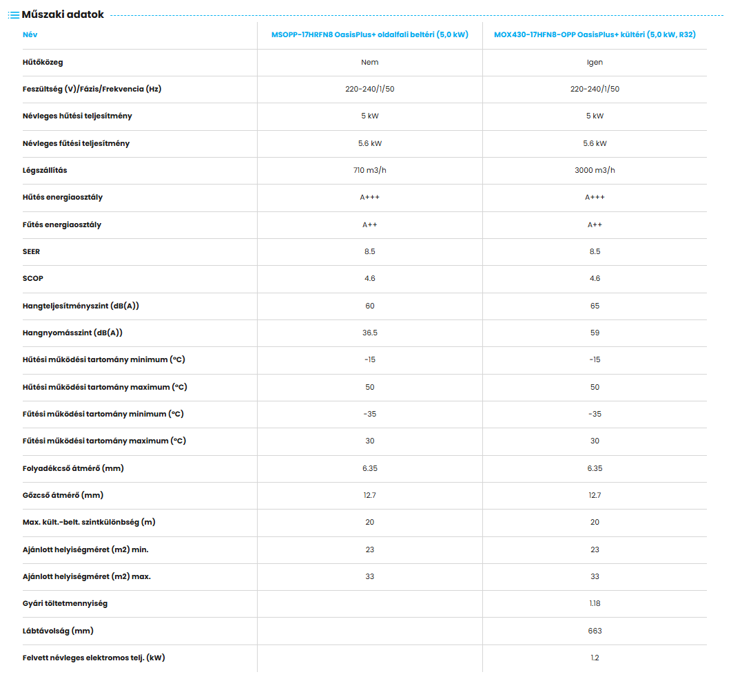 A Midea MOPP-17-SP Oasis Plus+ Inverteres Split klíma fontos tulajdonságai: