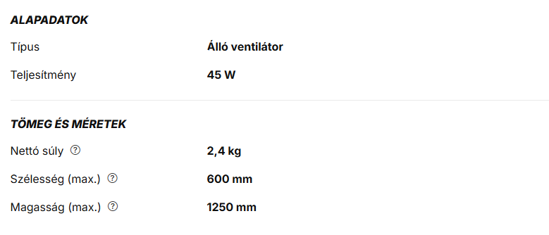 A Too Fans álló ventilátorra 24 hónap jótállás vonatkozik.